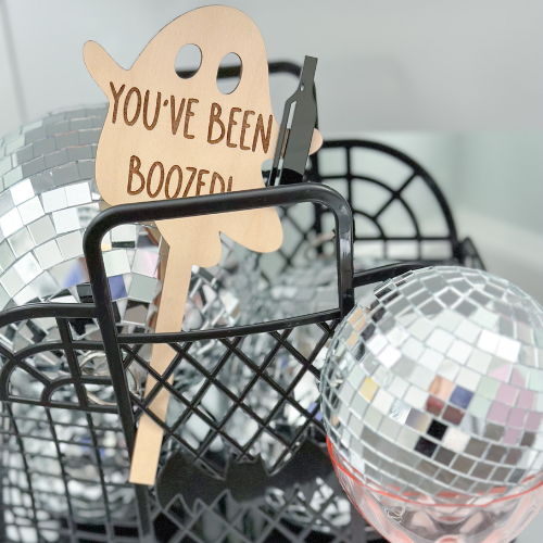 โขSelect from two styles; Booed or Boozed with an acrylic wine bottle (must be 21 + to purchase Boozed).