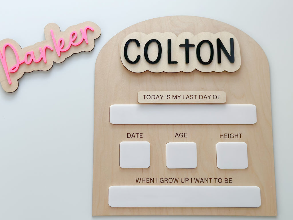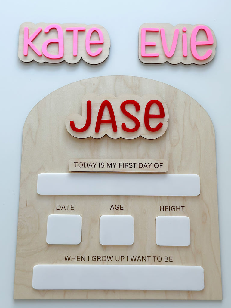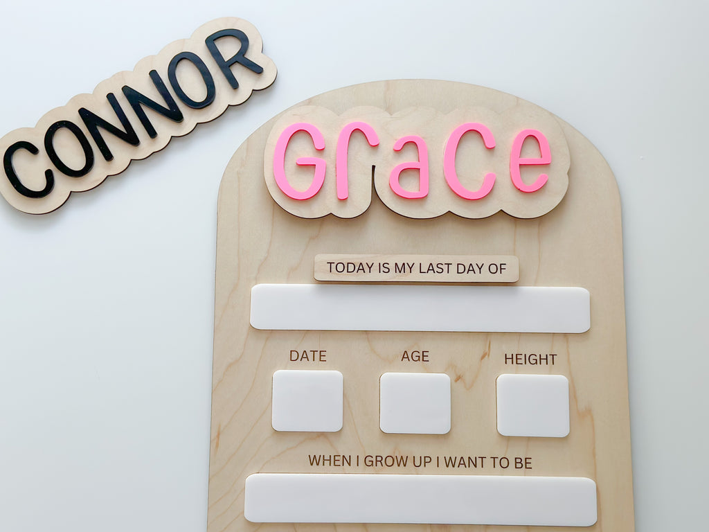 - Single names will be cut out of acrylic glued to a wooden backing and will be glued directly to the board, no magnet.